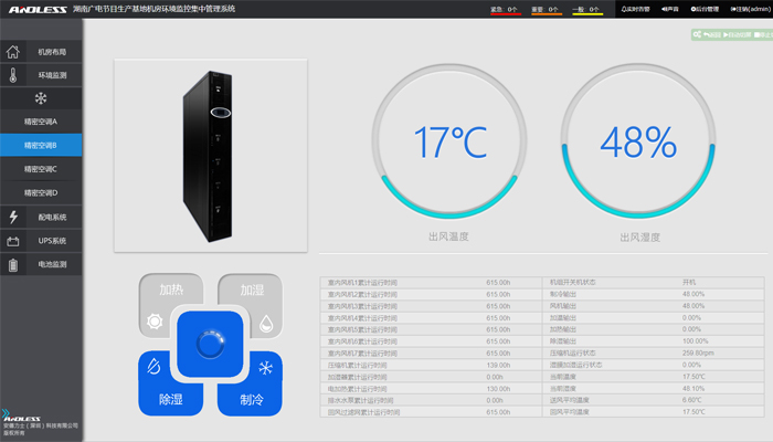 本次為湖南廣播電視臺節(jié)目生產(chǎn)基地冷通道機房配備并安裝調(diào)試安德力士品牌動力環(huán)境集中監(jiān)控系統(tǒng)一套,現(xiàn)已安裝、調(diào)試、培訓(xùn)完成。